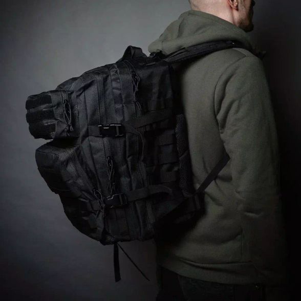 Тактический рюкзак "Military" идеально подходит как для ежедневного использования, так и для активного отдыха, например, для походов и рыбалки. Он изготовлен из прочного нейлонового материала для обеспечения его долговечности. Регулируемые лямки обеспечивают идеальную посадку. Объем рюкзака составляет 45 литров, удобные отделения для хранения позволят вам легко и быстро разместить или найти нужные вещи. Рюкзак выполнен в классическом черном цвете, что делает его универсальным выбором для любого случая.
