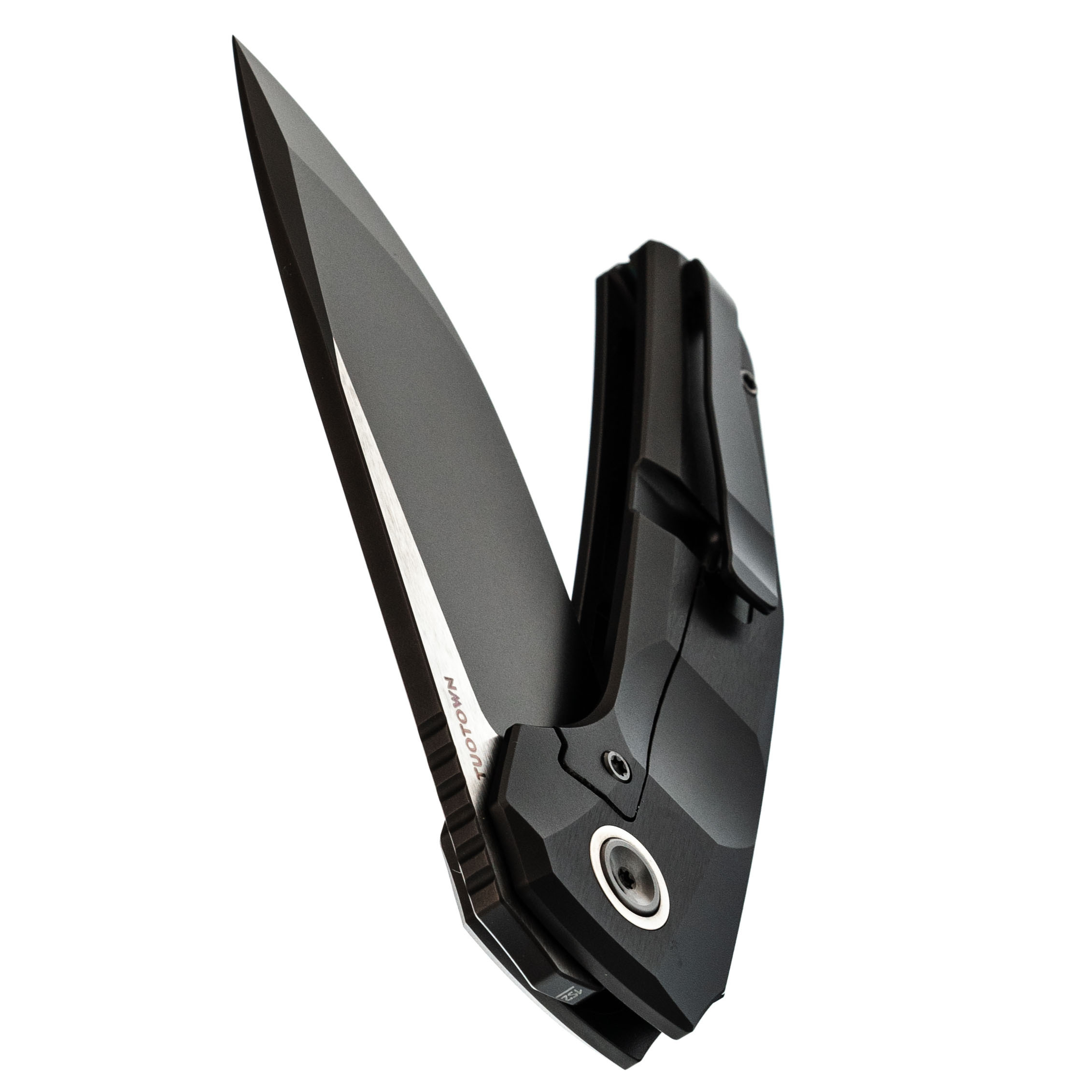 Dyag FCF - это результат коллаборации бренда TuoTown и мастера Dyag. Нож среднего размера с выверенными формами, удобный в использовании и созданный для тех, кто ценит детали. Лимитированная версия, отличающаяся вниманием к качеству и современному стилю. И клинок, и рукоять покрыты слоем DLC - это твёрдое углеродное напыление, которое защищает от царапин и придаёт изделию глубокий матовый оттенок.