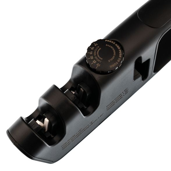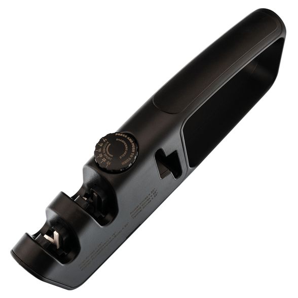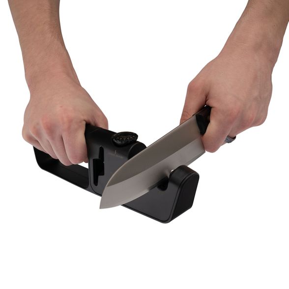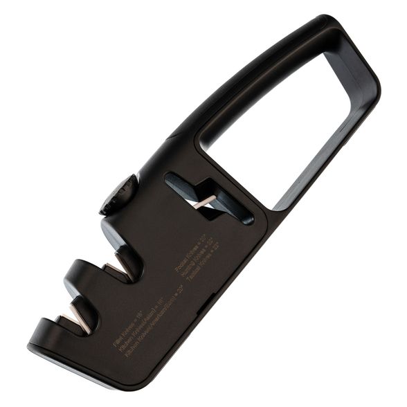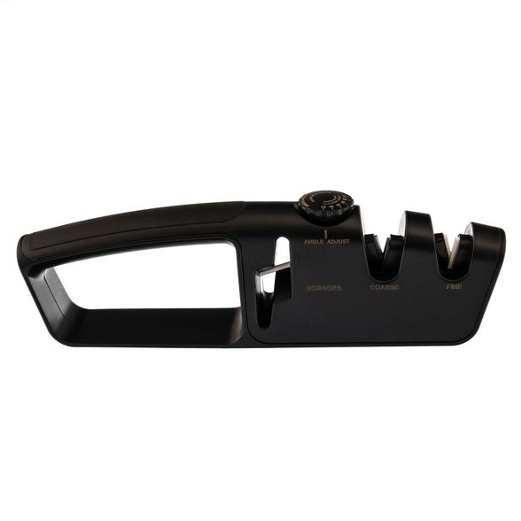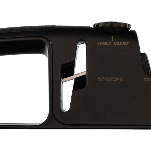ТОЧИЛКА МЕХАНИЧЕСКАЯ ДЛЯ НОЖЕЙ И НОЖНИЦ, С РЕГУЛИРУЕМЫМ УГЛОМ ЗАТОЧКИ станет незаменимым аксессуаром в вашем домашнем или дачном наборе инструментов. Довольно часто, при покупке дорого ножа встает вопрос - а как же его точить? Наверное нужно обращаться к мастерам и платить за это деньги? Точилка с регулируемым углом заточки позволяет решить эту проблему. Любой кухонный или туристический нож вы сможете заточить с ее помощью. С помощью специального регулятора нужно установить требуемый угол и готово, можно работать. В точилке предусмотрены два V-образых элемента для ножей и одно отверстие для заточки ножниц.