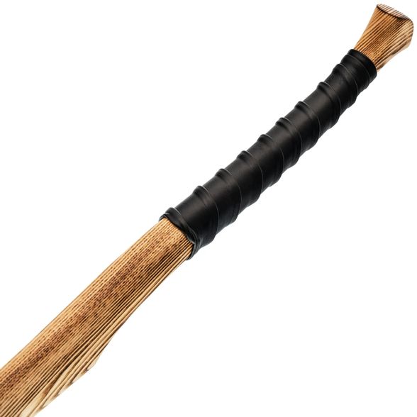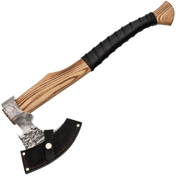 Дополнительное удобство при работе обеспечивает натуральная кожаная обмотка рукояти. Она делает хват более надежным, предотвращает скольжение и снижает нагрузку на руки. В комплекте также идет кожаный чехол для лезвия, который обеспечивает безопасность при хранении и транспортировке.