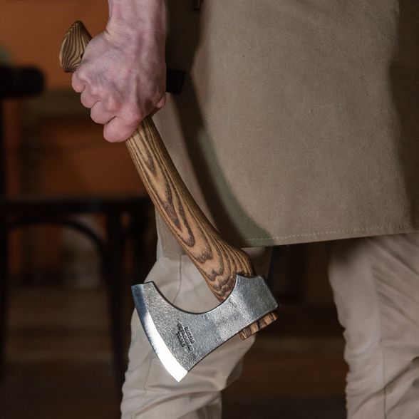 ТОПОР РОСЛАВЛЬ VII, ИЗОГНУТАЯ РУКОЯТЬ, 370 ММ/120 ММ создан для тех, кто увлекается спортивным метанием ножей и других предметов. Создатели этой модели учли многолетний опыт профессиональных спортсменов и создали вариант, который подойдет как опытным метателям, так и начинающим спортсменам. Топорик отлично подходит для метания на средние и длинные дистанции. Благодаря компактным размерам его можно взять с собой на пикник, для организации соревнований на свежем воздухе.