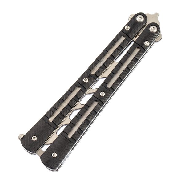ТРЕНИРОВОЧНЫЙ НОЖ-БАБОЧКА НА ПОДШИПНИКАХ DAO (БАЛИСОНГ) выполнен в интересной стилистике ножей, которые пришли к нам из малазийского архипелага. Нож не имеет жесткой фиксации и фиксируется только за счет мышечного усилия, руки, которая его сжимает. Нож предназначен для выполнения различных трюков - флиппинга, что требует постоянной тренировки. Именно для этих целей создан этот нож. Среди интересных моментов стоит отметить, что клинок оснащен открывалкой и гаечным ключом.