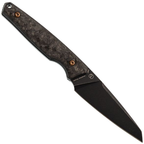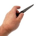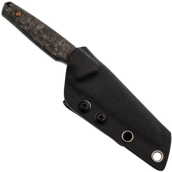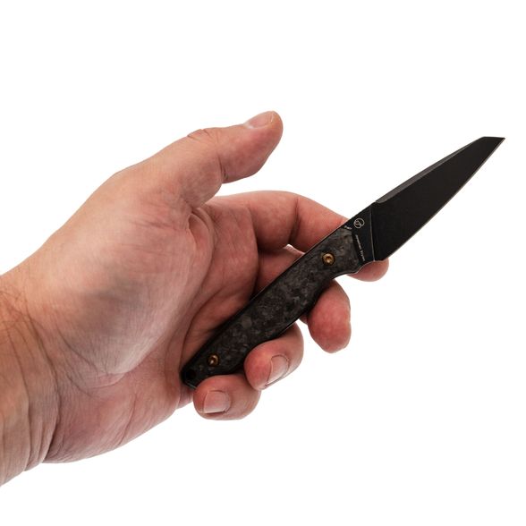 Рукоять из карбона имеет цепкую текстуру и надежный упор, предотвращающий соскальзывание руки при работе. Эргономичная форма обеспечивает комфорт даже при длительном использовании. Дополнительно предусмотрено темлячное отверстие, расширяющее возможности индивидуализации и фиксации инструмента.