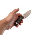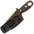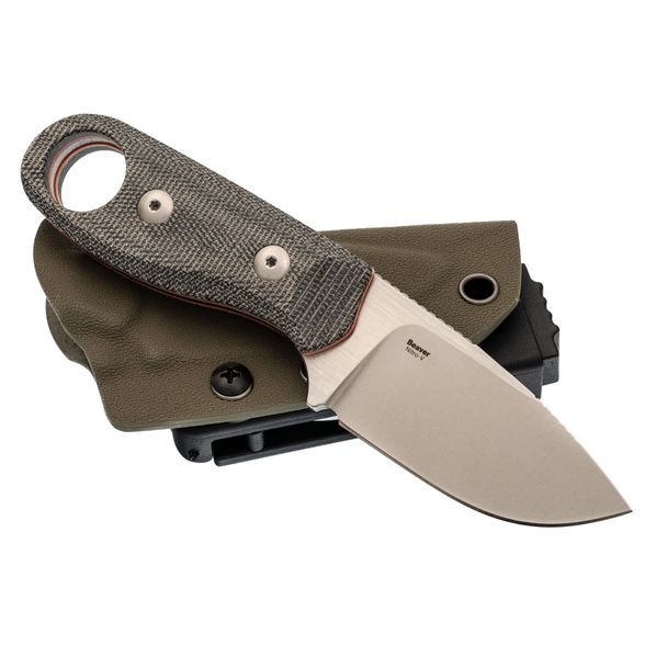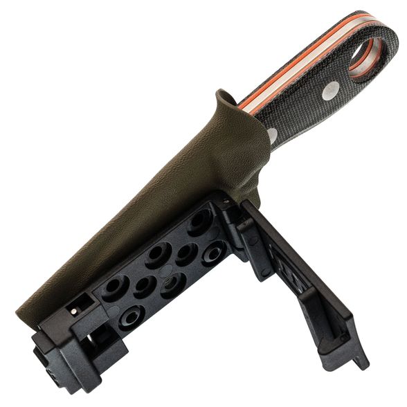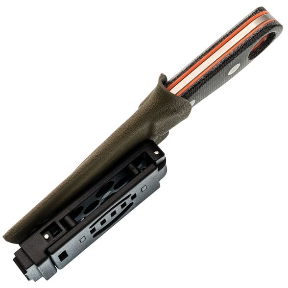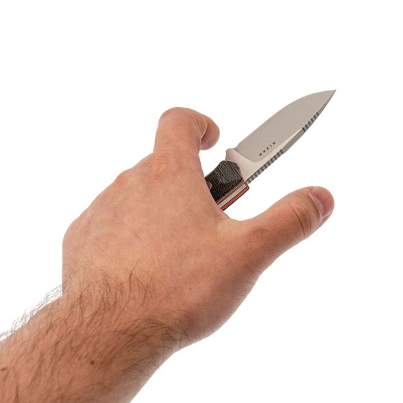 Конструкция Full-Tang обеспечивает надёжность всей сборки - клинок и рукоять выполнены как единое целое, что исключает люфты и повышает прочность. Рукоять выполнена из сочетания двух материалов: стабильную основу задаёт тонкий слой G10, который не боится влаги, а микарта, использованная в основном объёме рукояти, придаёт ножу приятную фактуру и тёплое тактильное ощущение. Микарта хорошо держится в руке даже в мокрых условиях и со временем приобретает красивую патину.