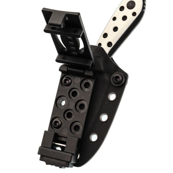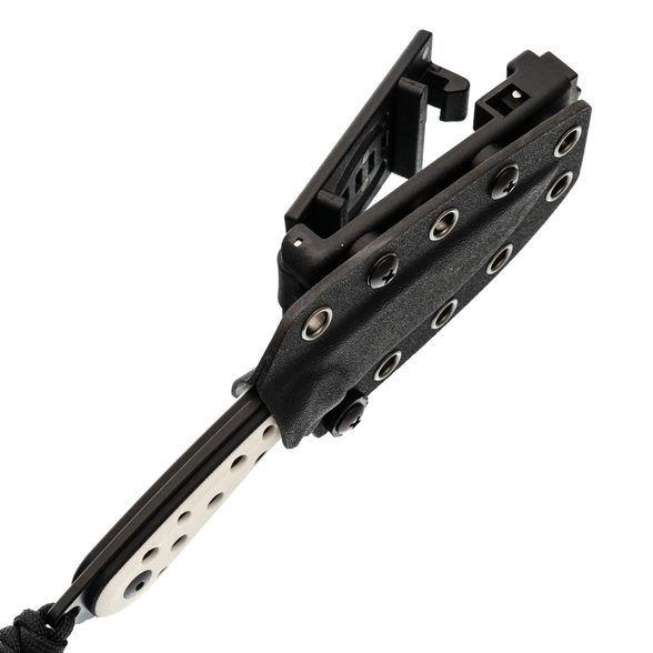 Ножны из прочного кайдекса фиксируют нож надёжно даже в положении рукоятью вниз. Tek-Lok в комплекте позволяет носить нож горизонтально или вертикально на ремне, обеспечивая удобство доступа и безопасности.