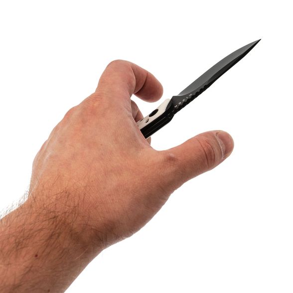 Рукоять с аккуратным изгибом удобно ложится в руку, не вызывая усталости при длительном использовании. Накладки хорошо заполняют ладонь, обеспечивая уверенный хват и комфорт при ношении. Конструкция с цельнометаллическим монтажом гарантирует надёжность и долговечность.