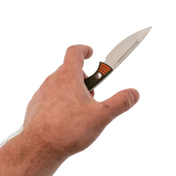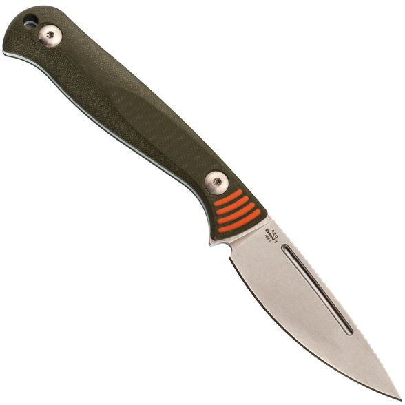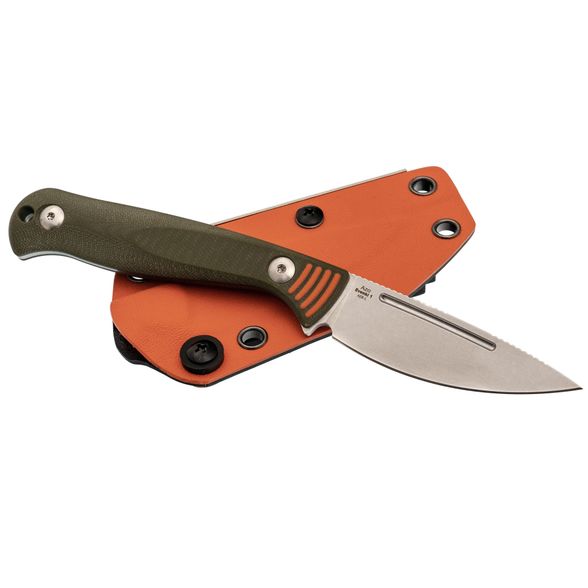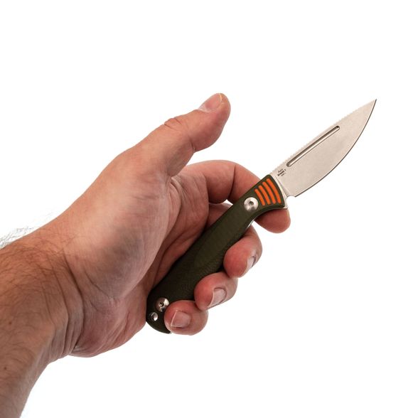 Рукоять G10: Современный композит, устойчивый к влаге, ударам и перепадам температур. Надежно лежит в руке, не скользит, что особенно важно в полевых условиях.