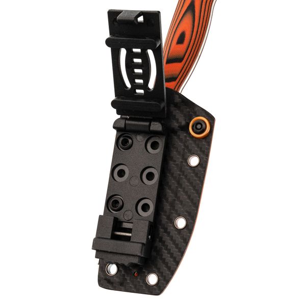 Evenki 2 комплектуется ножнами из кайдекса, которые обеспечивают надёжную фиксацию и защиту клинка при транспортировке. Благодаря креплению Tek-Lok нож можно удобно размещать на ремне горизонтально или вертикально - как вам комфортнее. Люверсы по краям ножен открывают дополнительные способы монтажа: будь то крепление на стропы рюкзака, MOLLE-платформу или обычный подвес на паракорде. Компактные ножны не мешают в движении и подходят для ежедневного ношения.