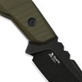 Зелёная G10 лежит в ладони естественно: скруглённые грани не давят, форма заполняет хват без лишних углов. Текстура добавляет контроля, а небольшие выемки под пальцы помогают удерживать инструмент в разных положениях. Благодаря удачному балансу рука меньше устаёт - удобно и делать длинные резы, и выполнять точные движения кончиком, в том числе в перчатках.