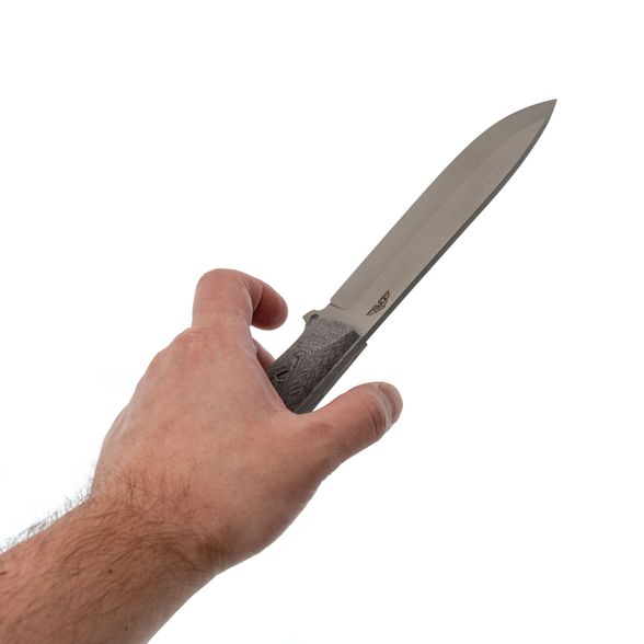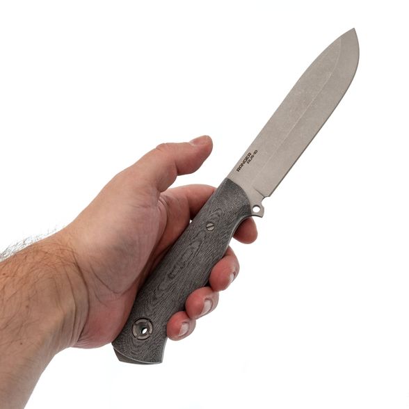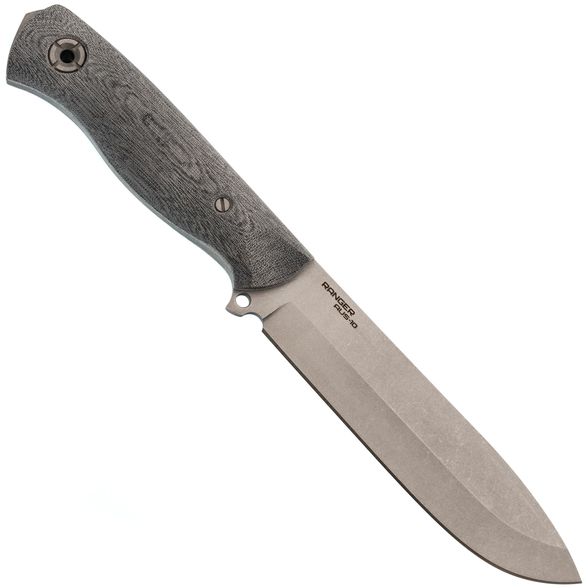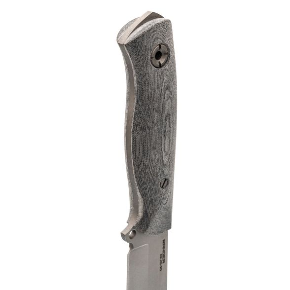 Рукоять из микарты с фирменной пескоструйной обработкой обеспечивает надежный и комфортный хват. Монтаж Full-Tang гарантирует максимальную прочность всей конструкции. Рукоять хорошо сбалансирована и удобно лежит в руке. Выступающий хвостовик позволяет наносить дробящие удары, а отверстия в винтовом креплении и подпальцевом упоре позволяют использовать темляк и дополнительную защиту для руки.