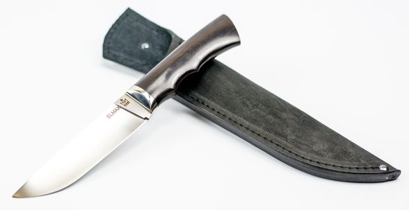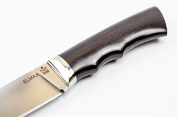 Многофункциональный нож, изготовленный из качественных материалов. Клинок данной модели изготовлен из легированной стали ELMAX. Эта сталь часто используется для создания тактических и специальных ножей. Клинок усиленную пяту, прямой обух и острый кончик. Нож отлично режет и хорошо приспособлен для нанесения сильных колющих ударов. Такая конструкция позволяет использовать его для целей самообороны. Рукоять ножа выполнена из стабилизированной древесины и украшена декоративным притином с тиснением.
