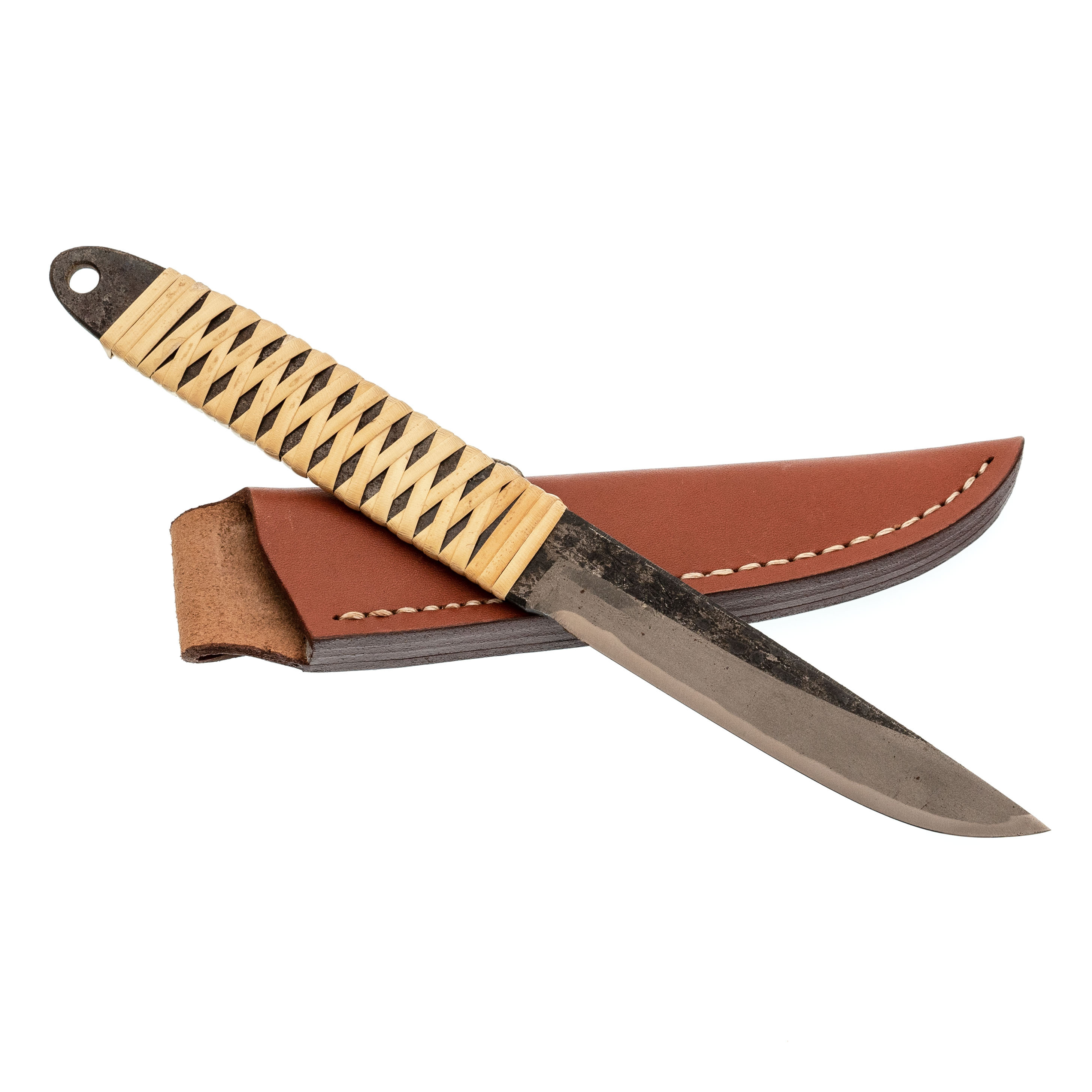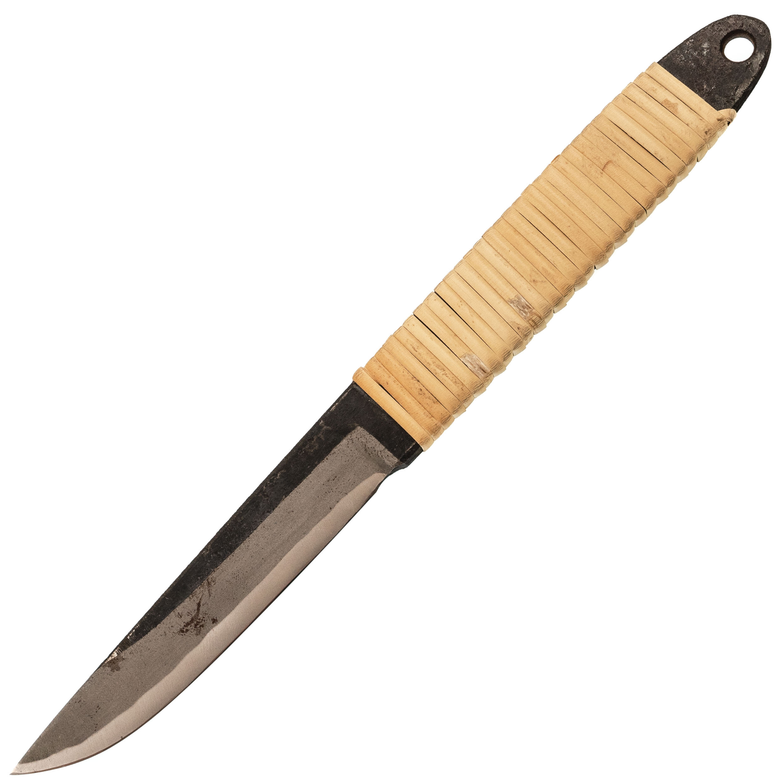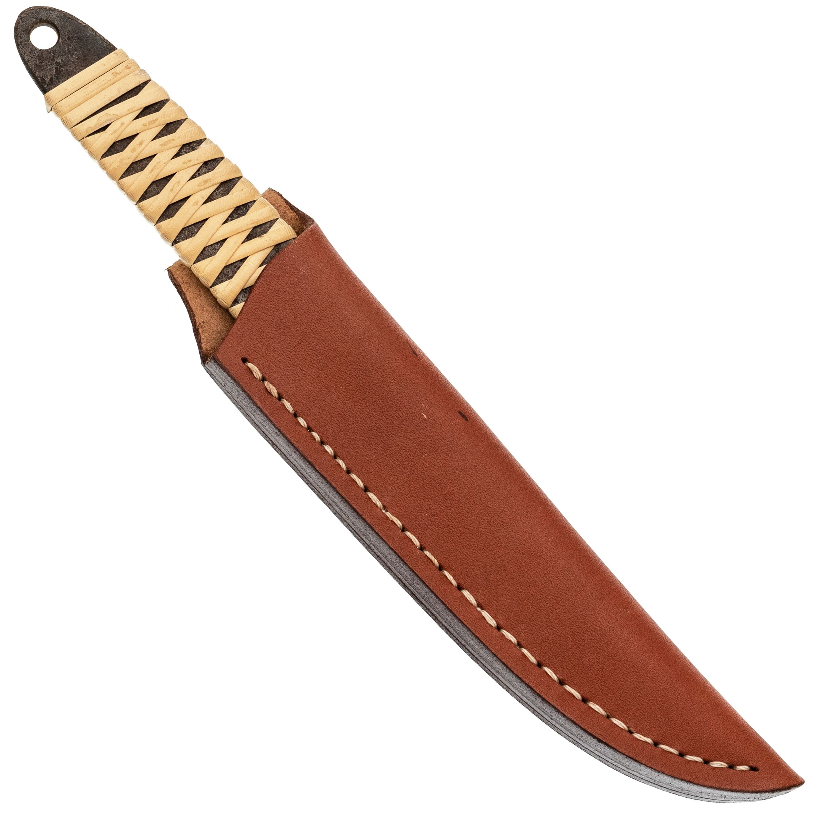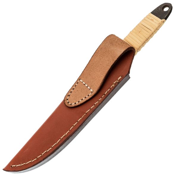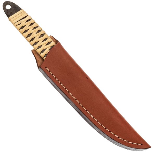 Туристический охотничий нож с фиксированным клинком Maruyoshi Hunting Drop Point большой, сталь Shirogami San-Mai, рукоять белая оплетка