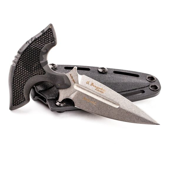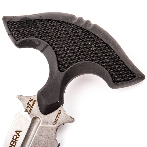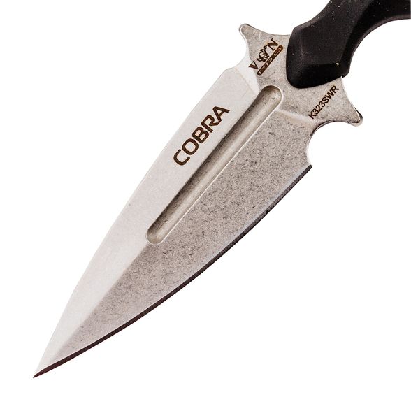 Тычковый нож Cobra от Viking Nordway - компактный шейный нож. Его преимущества - небольшие размеры и малый вес. Нож можно носить под одеждой, не привлекая ненужного внимания. Копьевидный клинок изготовлен из стали AUS-8, которая используется для производства серийных моделей ножей. Она устойчива к коррозии, а режущую кромку легко направить с помощью стандартных бытовых абразивов. Обух толщиной в 3 мм обеспечивает хорошее проникновение как при тычковом движении, так и при разрезании. Рукоять из рифлёной резины обеспечивает надёжный хват. Нож комплектуется пластиковым чехлом.