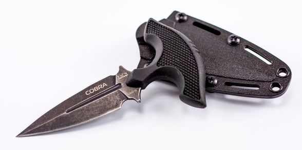 Тычковый нож Cobra – особое средство для самообороны. Данная разновидность ножа с Т-образной формой отличается простотой пользования и высокой надежностью удержания. Рукоятка крепко зажимается между пальцами, чем обеспечивает удобство хвата. Поэтому тычковый нож Cobra крайне сложно выбить из руки. И даже при раскрытой ладони изделие не выпадет. Короткий клинок уменьшает возможность выворачивания инструмента наружу при колющем ударе. Функциональные характеристики хорошо дополнены стильным дизайном. Ножны тычкового ножа Кобра оснащены клипсой для крепления на ремне.