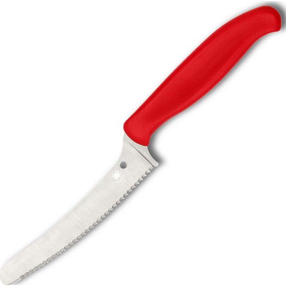 Универсальный кухонный нож Spyderco Z-Cut Serrated Offset Kitchen, сталь CTS™ - BD1 Alloy, рукоять красный полипропилен