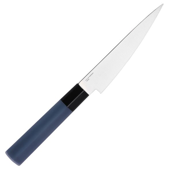 Клинок длинный - хватает для большинства продуктов, от капусты до куска мяса. Он тонкий, со спусками от обуха, поэтому нож легко входит в продукт и режет без усилий. Хорошо работает как на прямом резе, так и на аккуратной шинковке.