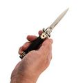 Такой аксессуар, как выкидной нож Аль Капоне (арт. B195-34), уместен не только в городе, но и на природе. Замок Lever-Lock обеспечивает удобство и безопасность при использовании одной рукой, предотвращая случайное открытие. Благодаря этому, нож идеально подходит как для ежедневного использования, так и для особых случаев.