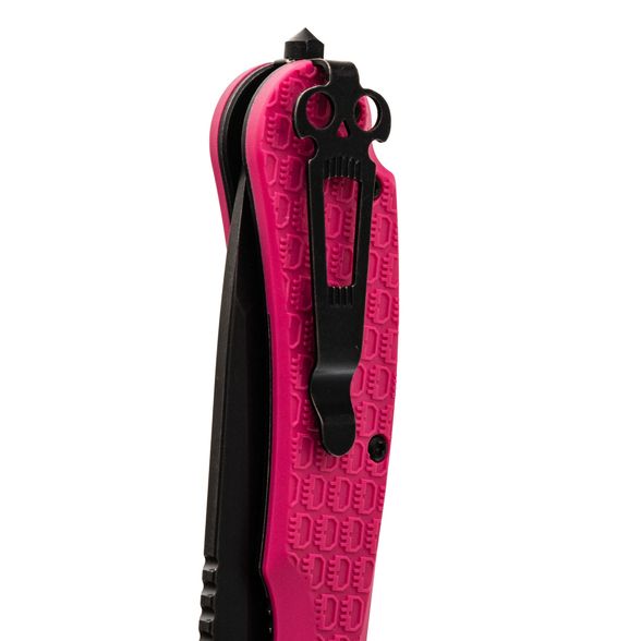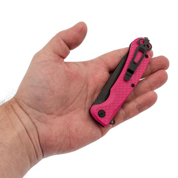 Рукоять выполнена из FRN – высокопрочного и лёгкого термопластика, который не теряет своего цвета, не впитывает запахи и устойчив к влаге. Её фирменная эргономичная форма с подпальцевой выемкой гарантирует надёжный и комфортный захват даже при интенсивном использовании. Функциональность ножа дополнена замком Liner-Lock, который обеспечивает безопасность при выполнении любых задач, а фирменная клипса с изображением черепа делает его удобным для ношения. Для тех, кто ценит возможность персонализации, предусмотрено темлячное отверстие для украшения ножа.