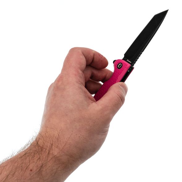 Лезвие изготовлено из стали 8Cr14MoV – нержавеющего сплава, который характеризуется лёгкостью заточки и высокой ударной вязкостью. За счёт высоких прямых спусков нож обеспечивает превосходное режущее действие, а двойные режущие кромки позволяют адаптировать заточку под различные нужды. Дополнительно клинок имеет покрытие Black Stonewash, которое не только защищает от коррозии, но и предотвращает нежелательные блики, придавая изделию стильный вид. Открытие лезвия осуществляется мгновенно благодаря плавнику-флипперу, а осевой узел, состоящий из подшипников, обеспечивает максимально плавное и надёжное разворачивание.