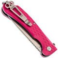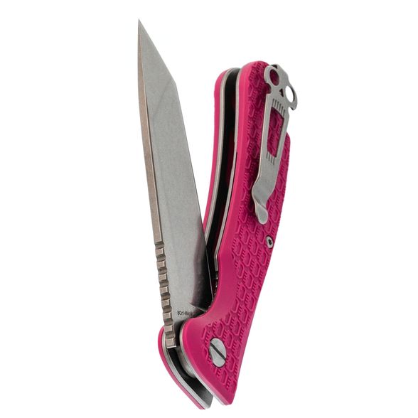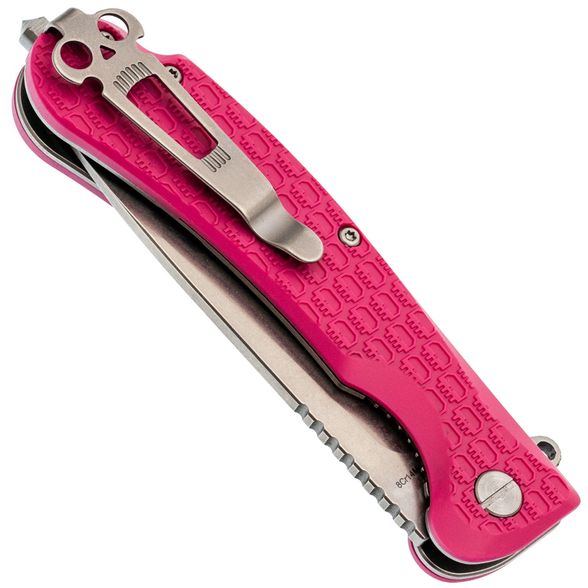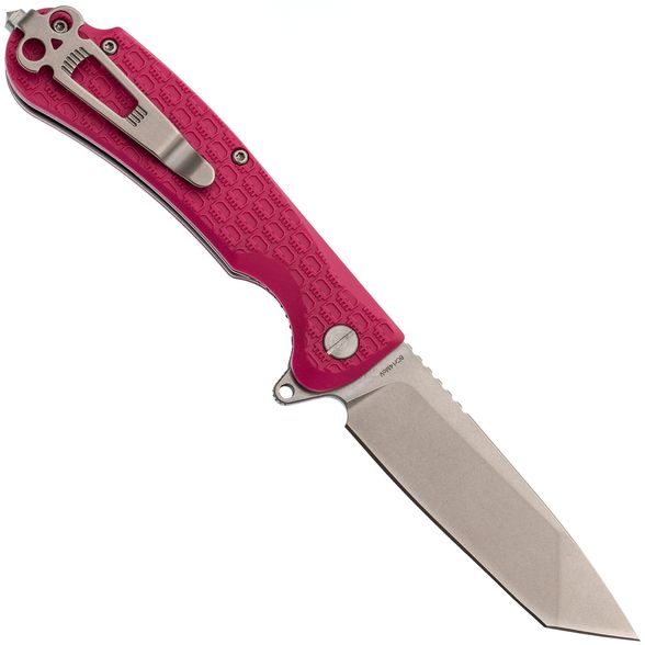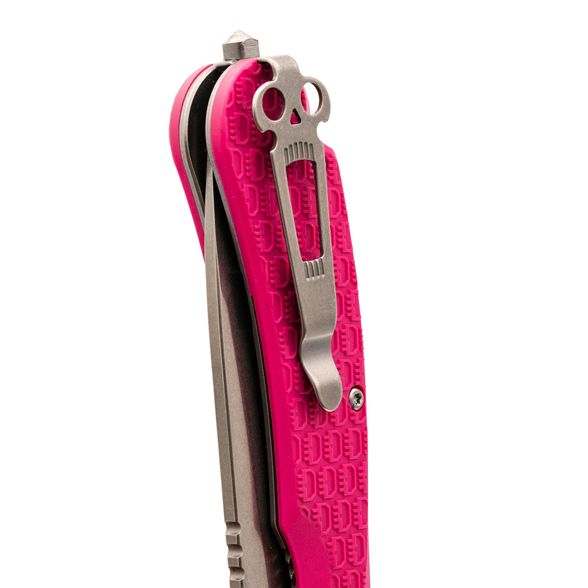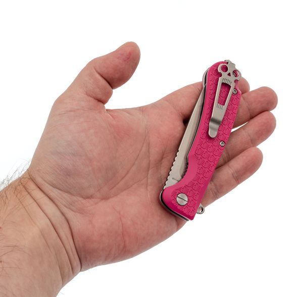 Рукоять изготовлена из FRN – прочного и лёгкого термопластика, который не выцветает, не впитывает запахи и не подвержен воздействию воды. Фирменная эргономичная форма с подпальцевой выемкой обеспечивает комфортный и безопасный захват, что особенно важно при длительной эксплуатации. Надёжность конструкции поддерживается замком Liner-Lock, а для удобства ношения предусмотрена фирменная клипса с изображением черепа. Любители декора оценят также наличие темлячного отверстия, позволяющего дополнительно украсить нож.