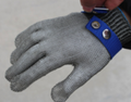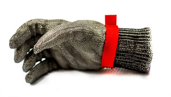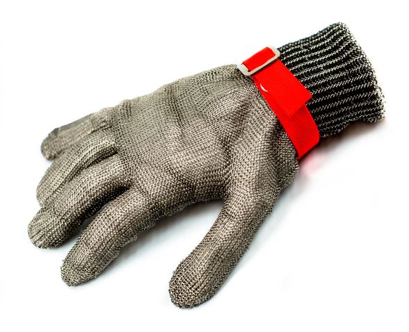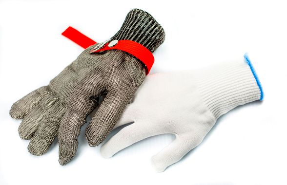 Работая с острыми предметами необходимо применять средства индивидуальной защиты. Для предохранения рук от порезов советуем купить перчатки из металлической плетенки. Это полноценные пятипалые изделия с прочным нитриловым ремешком и застежкой. Есть эластичная манжета, благодаря которой аксессуар комфортно сидит на запястье и не спадает. Перчатки изготавливаются в России и относятся к защитному средству, предназначенному для эксплуатации в условиях с повышенным риском причинения телесного вреда в виде пореза или другой травмы.