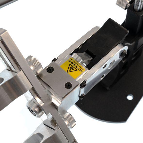 Приспособление для закрепления лезвия, состоящее из двух зажимов с фиксацией при помощи винтов под шестигранный ключ. Этот установочный механизм закреплен к основанию при помощи специального регулировочного приспособления.