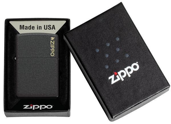 Зажигалка ZIPPO Logo с покрытием Black Crackle™, латунь/сталь, чёрная, матовая, 38x13x57 мм