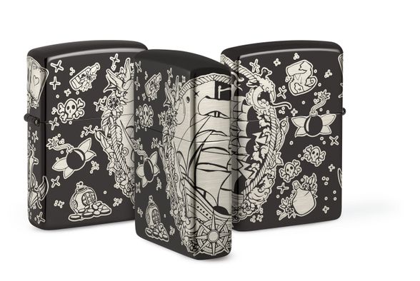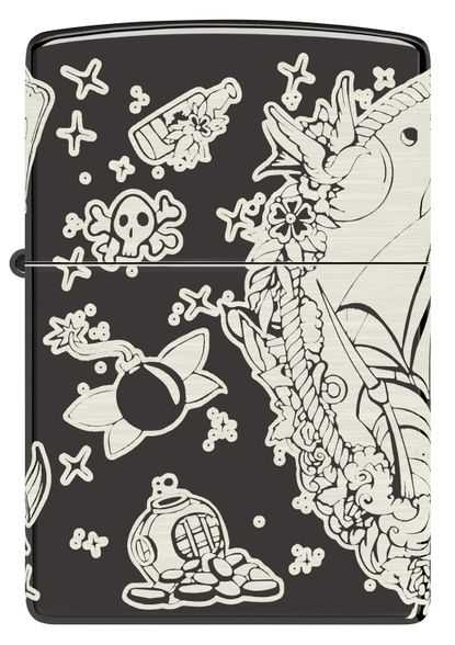Зажигалка ZIPPO Pirates Treasure с покрытием High Polish Black, латунь/сталь, черная, глянцевая, 38x13x57 мм