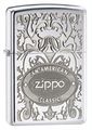 Зажигалка ZIPPO American Classic High Polish Chrome, латунь с никеле-хромовым покрытием, серебряный, матовая с гравировкой, 36х56х12 мм