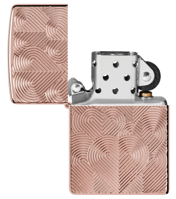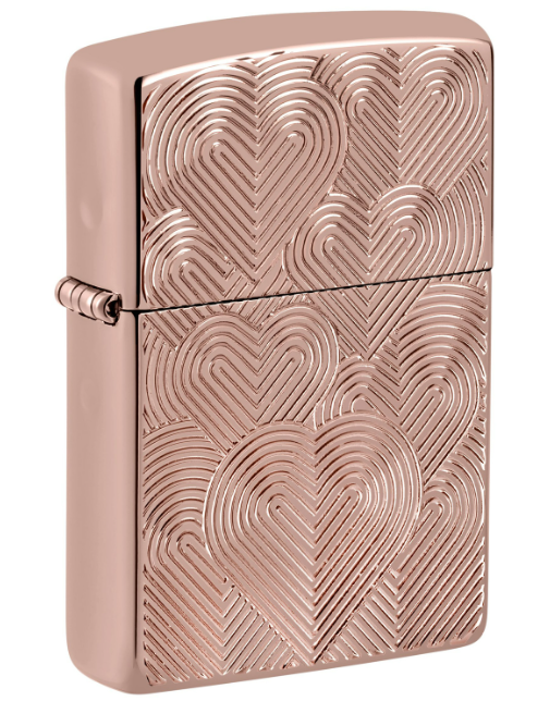 Зажигалка ZIPPO Armor® Hearts с покрытием Rose Gold, латунь/сталь, розовое золото, 38x13x57 мм