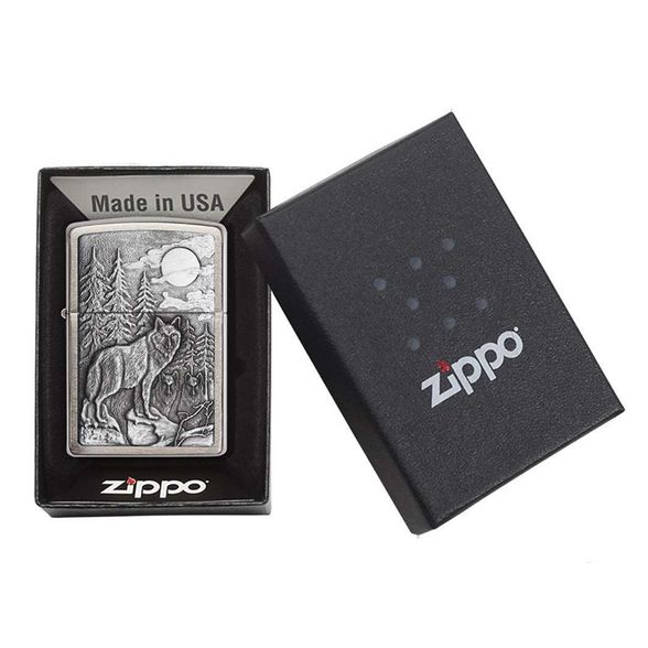 Зажигалка ZIPPO Classic Волк с покрытием Brushed Chrome
