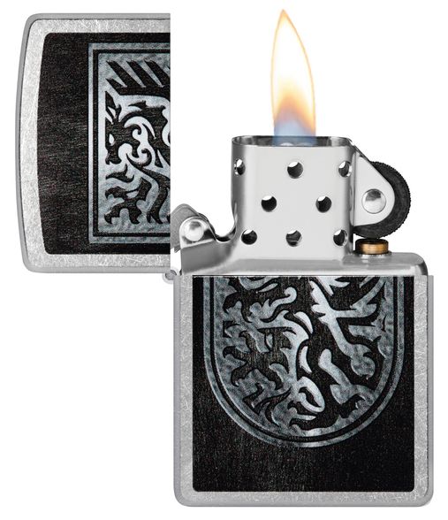 Зажигалка ZIPPO Dragon Design с покрытием Street Chrome, латунь/сталь, серебристая