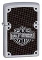 Зажигалка ZIPPO Harley-Davidson®, латунь с покрытием Satin Chrome™, серебристая с эмблемой H-D на фоне геометрического орнамента, матовая, 36x12x56 мм