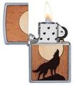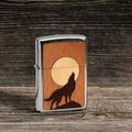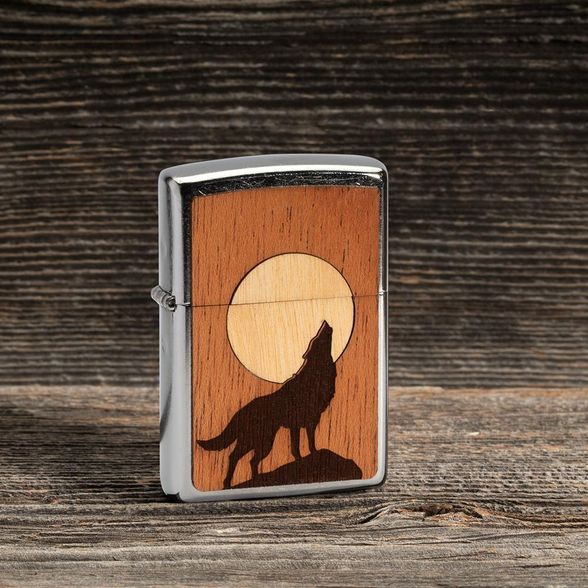 Зажигалка ZIPPO WOODCHUCK USA Howling Wolf с покрытием Street Chrome™, латунь/сталь/дерево, серебристая, 36x12x56 мм